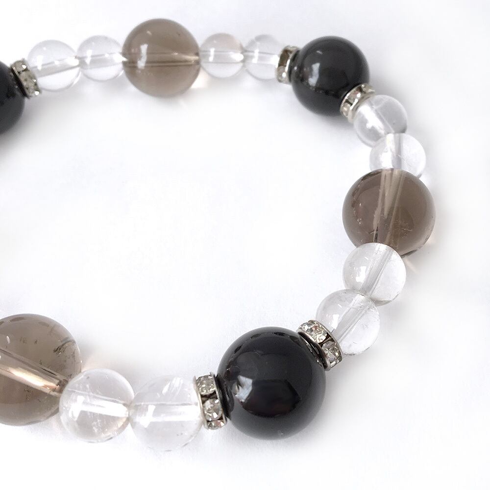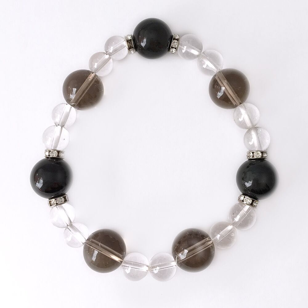 強力な厄除けと精神を安定させる効果で、ストレス解消とリラックスをもたらす、スモーキークォーツとオニキスのブレスレットです。