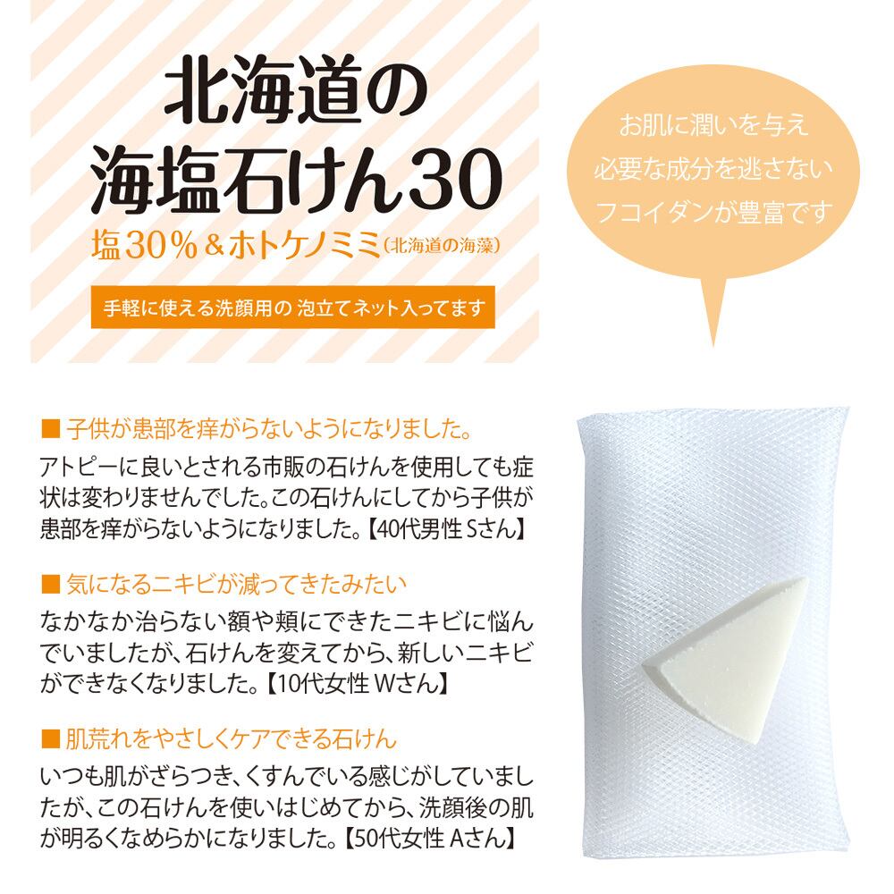 【北海道の海塩せっけん30 塩30%&ホトケノミミ】