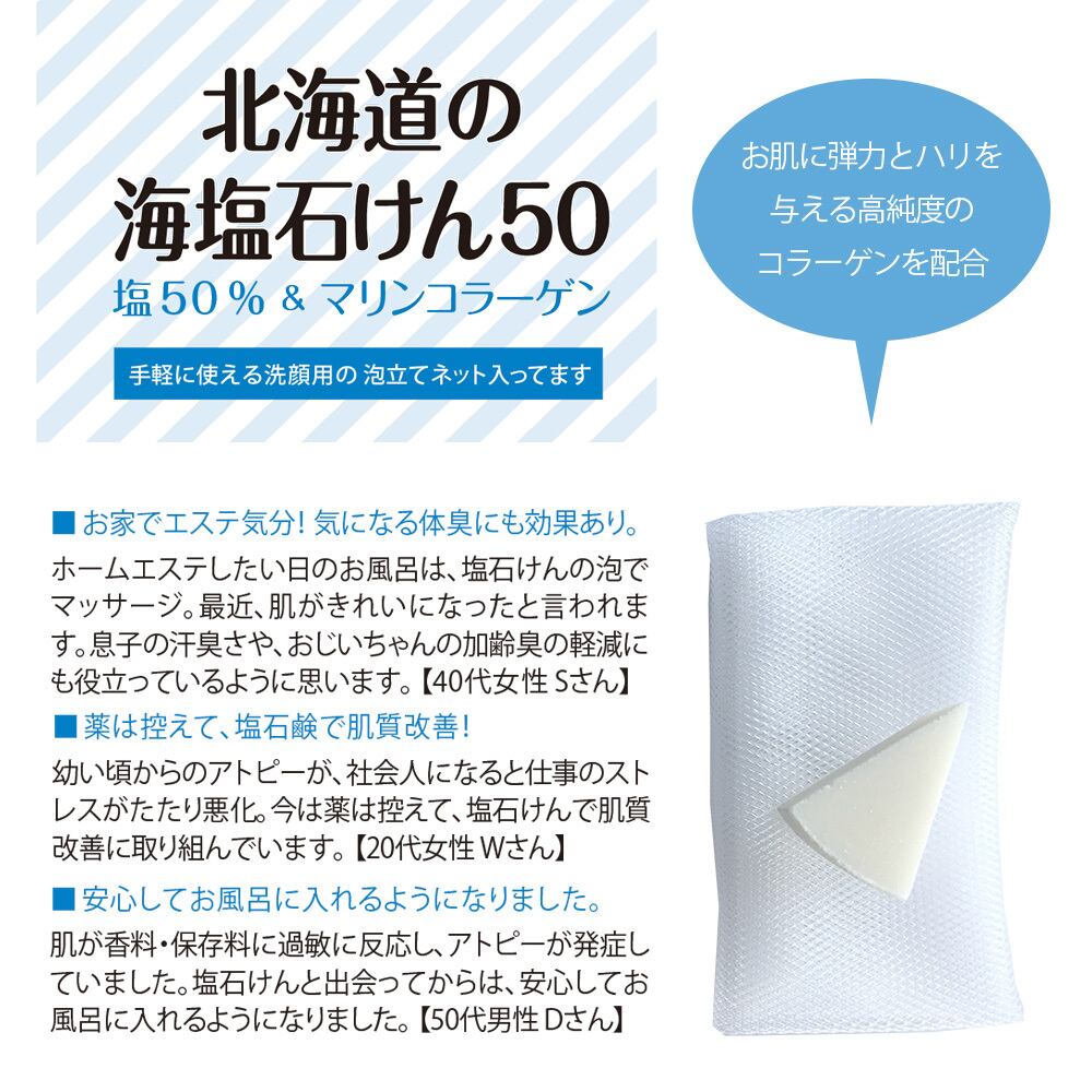【北海道の海塩せっけん50 塩50%&マリンコラーゲン】